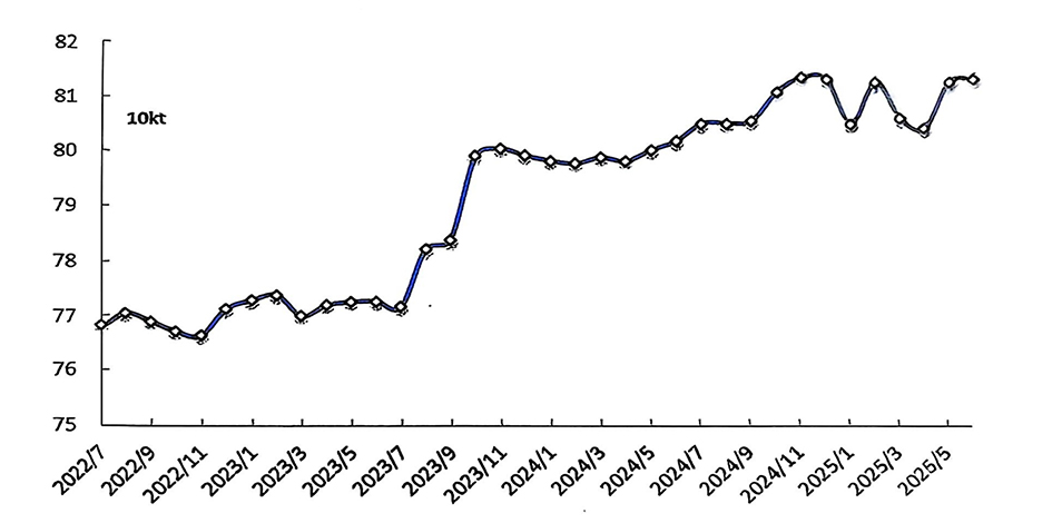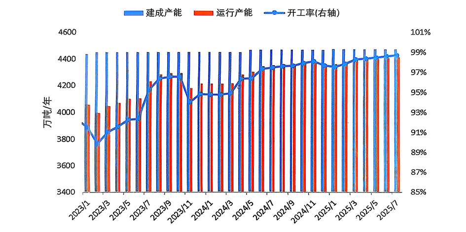 經(jīng)調(diào)整,6月份產(chǎn)量為364.5萬噸;預計7月份產(chǎn)量為376.9萬噸,同比增長1.5%,日均產(chǎn)量12.16萬噸,環(huán)比小幅增長0.07%。
